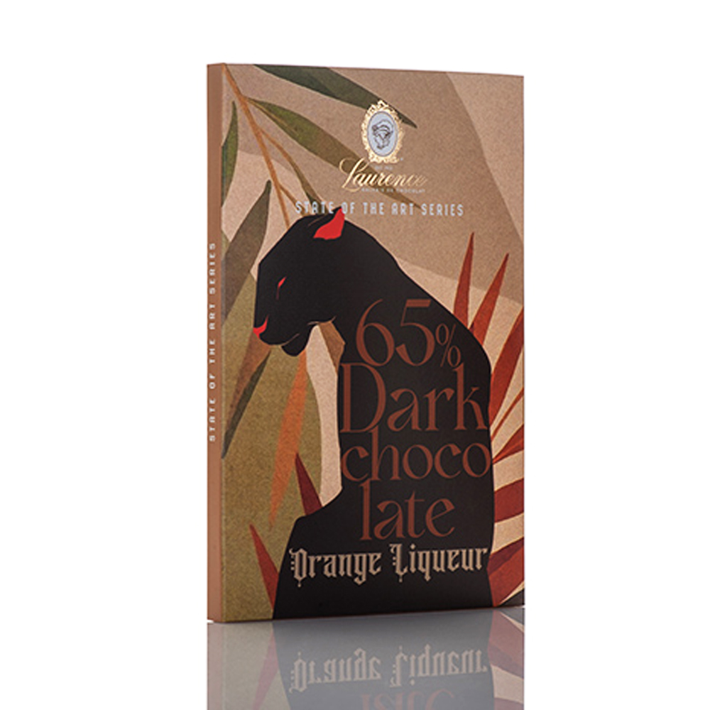 Μαύρη σοκολάτα με 65% κακάο εμπλουτισμένη με παραδοσιακό λικέρ πορτοκάλι. Μια σοκολάτα με γλυκόπικρη γεύση.