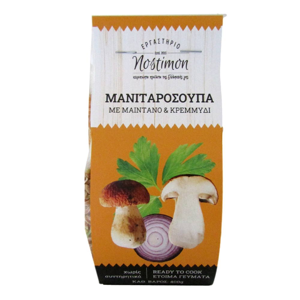 Συστατικά: ελληνικό σιμιγδάλευρο σκληρού σίτου, βουνίσιο νερό, αποξηραμένα μανιτάρια porcini, φρέσκα λαχανικά (μαϊντανός, κρεμμύδι), αφυδατωμένα λαχανικά (πράσο, καρότο, κρεμμύδι, κολοκυθάκι, κόκκινη πιπεριά, ντομάτα, σέλερι), καρυκεύματα (αλάτι, κουρκουμά, μπαχάρι).